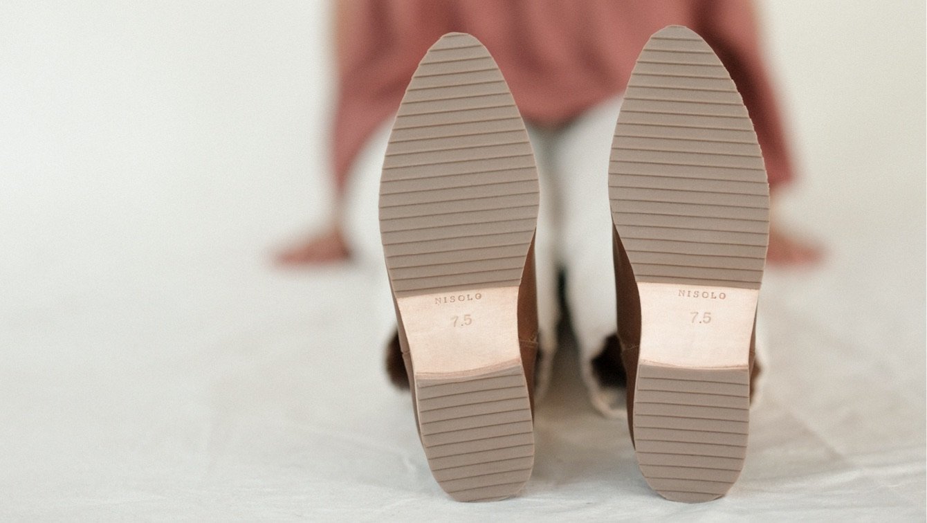 Nisolo shoes are handmade from genuine leather. For the greatest comfort, we recommend wearing your new Nisolo footwear for just a few hours for the first few days to allow the leather to mold to your feet. Within three to five wears, the leather will soften and mold to your feet.